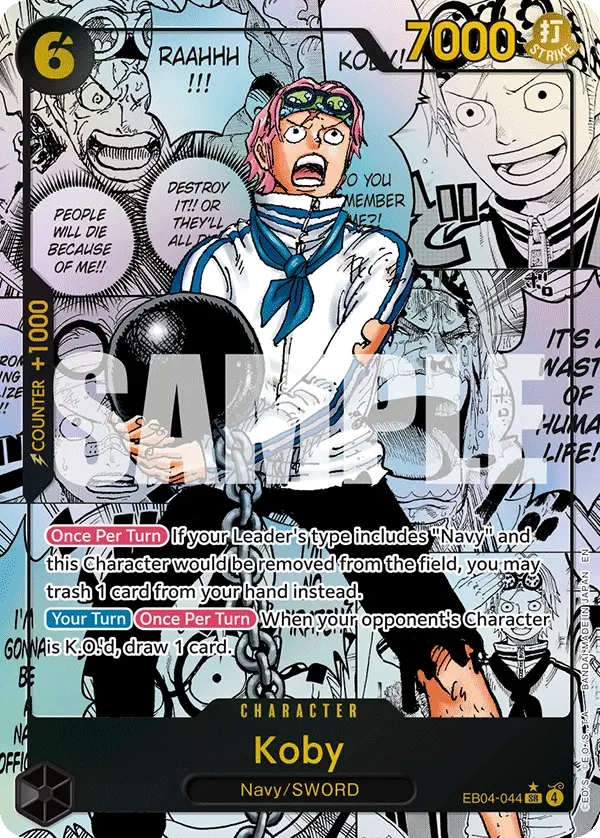 Once Per Turn If your Leader's type includes "Navy" and this Character would be removed from the field, you may trash 1 card from your hand instead.